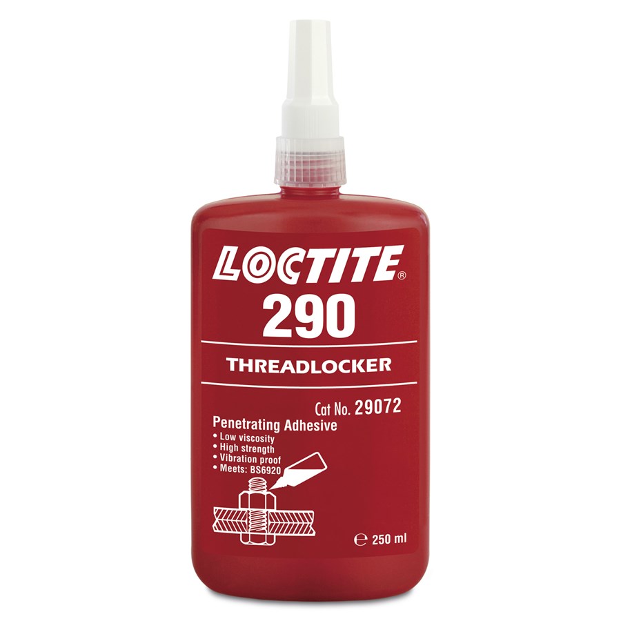 LOCTITE 290 je tekutý zaisťovač závitov so strednou / vysokou pevnosťou, navrhnutý na zaistenie a utesnenie závitových upevňovacích skrutiek. Vďaka svojej viskozite a kapilárnej akcii sa produkt dostane medzi závity a eliminuje potrebu demontáže pred aplikáciou. Produkt vytvrdzuje za neprítomnosti vzduchu medzi tesne priliehajúcimi kovovými povrchmi a zabraňuje uvoľňovaniu a vzniku netesností spôsobených rázovým zaťažením a vibráciami. Produkt taktiež vypĺňa póry v zvaroch, odliatkoch a kovových častí s práškovou farbou.