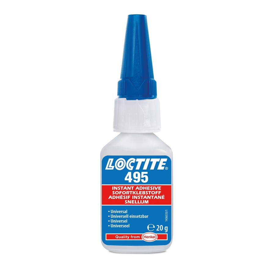 LOCTITE 495 je transparentné bezfarebné univerzálne sekundové lepidlo na báze etylu s nízkou viskozitou, ktoré ponúka rýchle lepenie (manipulačná pevnosť za 5 - 20 sek.) Môže lepiť širokú škálu materiálov vrátane plastov, gumy a kovov. Môže tiež lepiť polyolefíny v kombinácii s primerom LOCTITE SF 770 a LOCTITE SF 7239. Dostupné v 20 g, 50 g a 500 g balení.