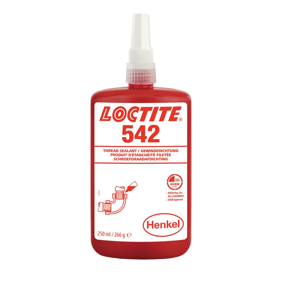 LOCTITE 542 je navrhnutý na zaistenie a utesnenie kovových potrubí a armatúr, ako aj iných valcovitých kovových zostáv. Tento produkt vytvrdzuje za neprítomnosti vzduchu medzi tesne priliehajúcimi kovovými povrchmi a zabraňuje uvoľňovaniu a vzniku netesností spôsobených rázovým zaťažením a vibráciami. Tixotropná povaha LOCTITE 542 znižuje pohyb tekutého produktu po aplikácii na dielci.