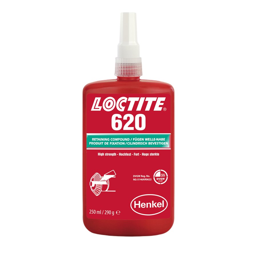 LOCTITE 620 je navrhnutý na lepenie lícovaných valcovitých častí. Produkt vytvrdzuje za neprítomnosti vzduchu medzi tesne priliehajúcimi kovovými povrchmi a zabraňuje uvoľňovaniu a vznikom netesností spôsobených rázovým zaťažením a vibráciami. Typické použitie zahŕňa umiestnenie čapov v zostavách výmenníkov, objímok do telies čerpadiel a ložísk v automobilových prevodovkách. Obzvlášť vhodné na aplikácie, pri ktorých sa vyžaduje teplotná odolnosť do 200 °C.