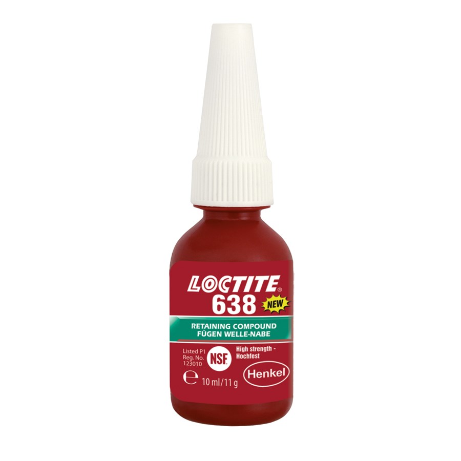 LOCTITE 638 je navrhnutý na lepenie lícovaných valcových dielcov, najmä tam, kde sa veľkosť lepenej medzery približuje k 0,25 mm. Tento produkt vytvrdzuje pri absencii vzduchu medzi lepenými kovovými povrchmi a zabraňuje uvoľňovaniu a vzniku netesností spôsobených rázovým zaťažením a vibráciami. Účinný na aktívnych kovoch, ale aj na pasívnych materiáloch, kde vykazuje robustné vytvrdnutie. Tento produkt poskytuje výborný výkon aj pri vysokých teplotách a dobrú odolnosť voči olejom, a vykazuje aj dobrú toleranciu slabého znečistenia povrchu.