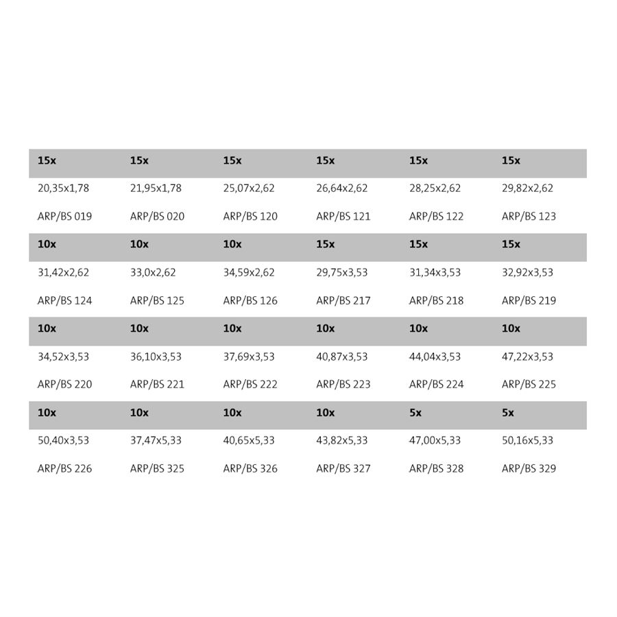 Profesionálna sada O-krúžkov pre servisné účely. Viac rozmerov o-krúžkov v jednom balení.